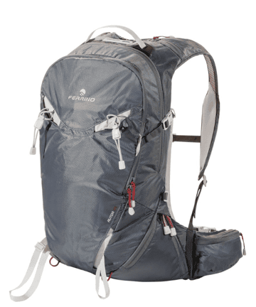 Mochila diseñada para esquí de montaña: ideal para salidas "rápidas y ligeras". Accesorios como el bolsillo frontal para material de primeros auxilios, un compartimento interior para crampones y un portaesquís en la parte delantera, la convierten en la mochila perfecta para actividades invernales.